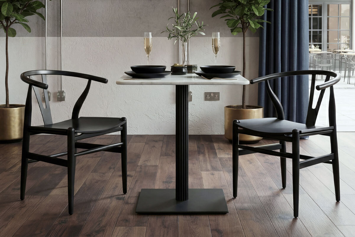 If you like the idea but aren’t ready to invest in the real thing, you can get the look for less. Our Omega Table Tops consist of a Carrara marble effect laminate with a gold ABS edge for a touch of luxury. If you need something that is going to withstand the toughest hospitality environments, then our Extrema Table Tops in a white marble effect have extraordinary resistance to scratches, heat, stains, flames, and cigarette burns. The tops are also water, weather, and UV-resistant, meaning that they’re ideal for outdoor environments.